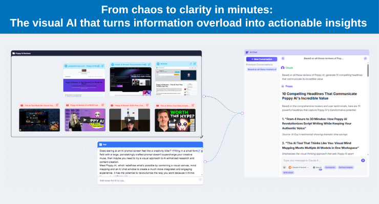 Poppy AI, a powerful visual AI tool, recently added mind mapping output to its growing set of capabilities. Hre’s why that matters.